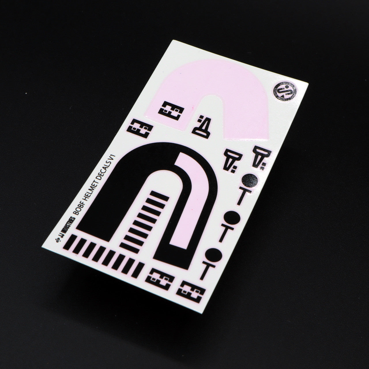 Our Book of Boba Fett Helmet Decals are printed with industrial UV Printers on film-free water slide backings.