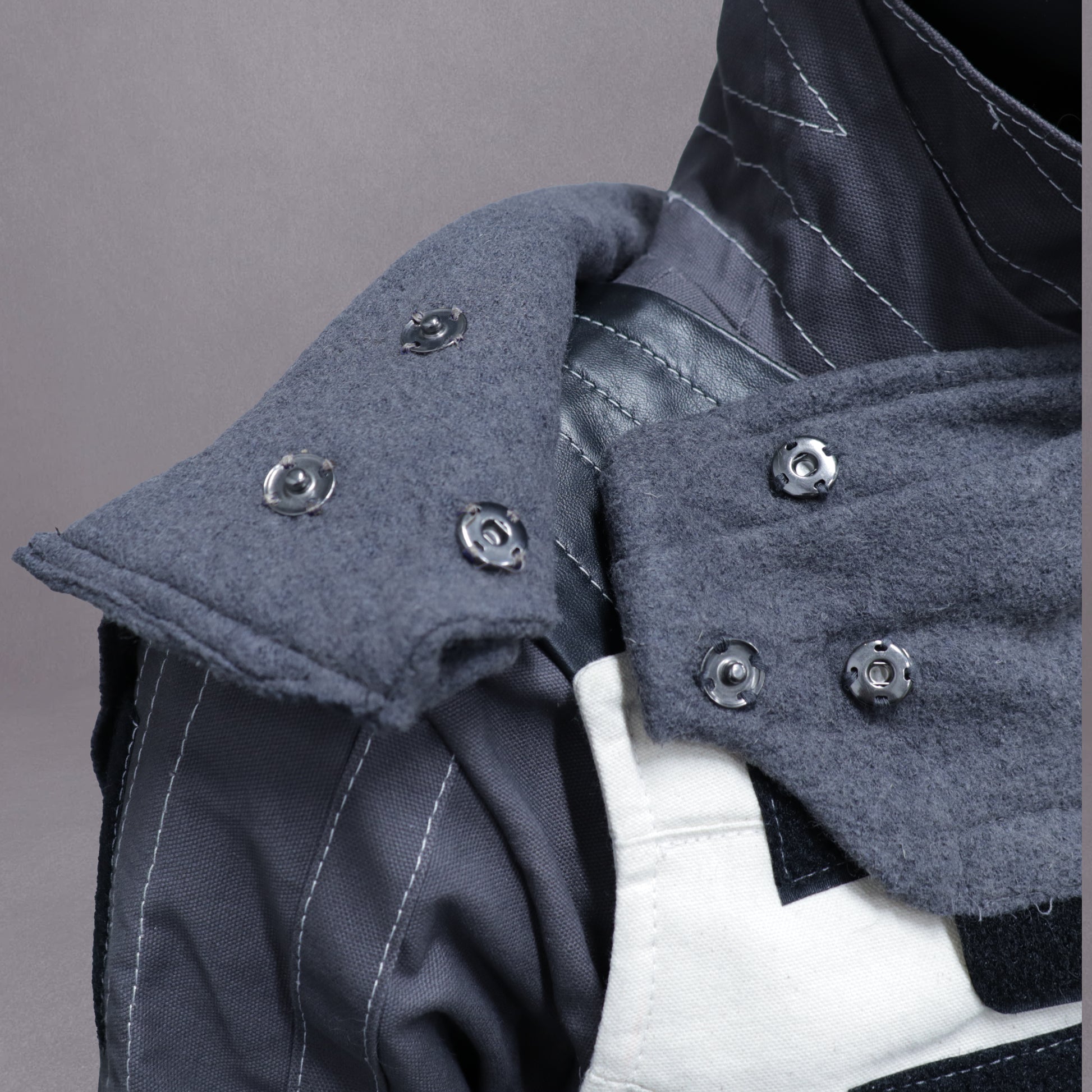 Introducing our extensively researched and developed Mandalorian cape resulting from a secret partnership with Debora Di Meo for over a year. The fabric is a custom-dyed, luxurious wool blend with a breathtaking drape that brings the cape to life. With three Velcro tabs (hook side) and three Pop Studs for closure, this cape can be tailored to fit any of Mando's iconic costumes.