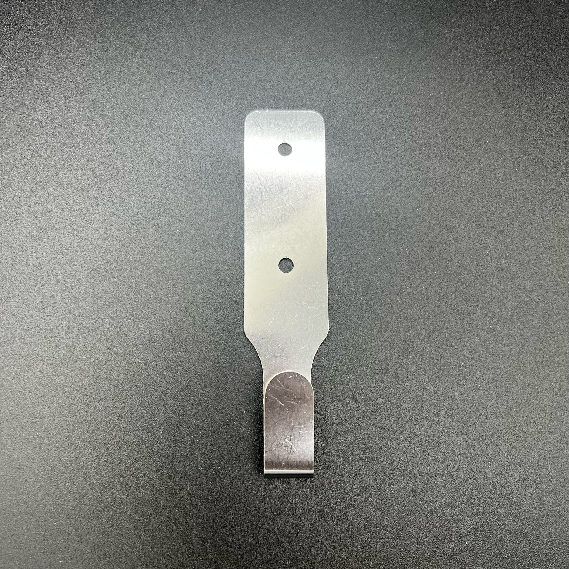 The hook is 26mm wide and 120mm in length with a gentle taper to ease its use with two 5mm mounting holes.