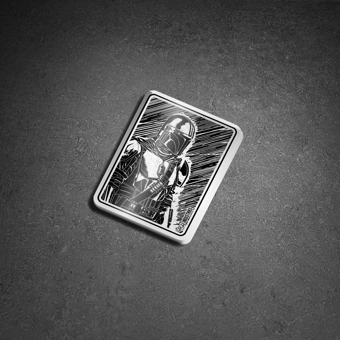 - The Wait - A rectangular mirror-chrome finish sticker featuring artwork by of Mando in the rain.