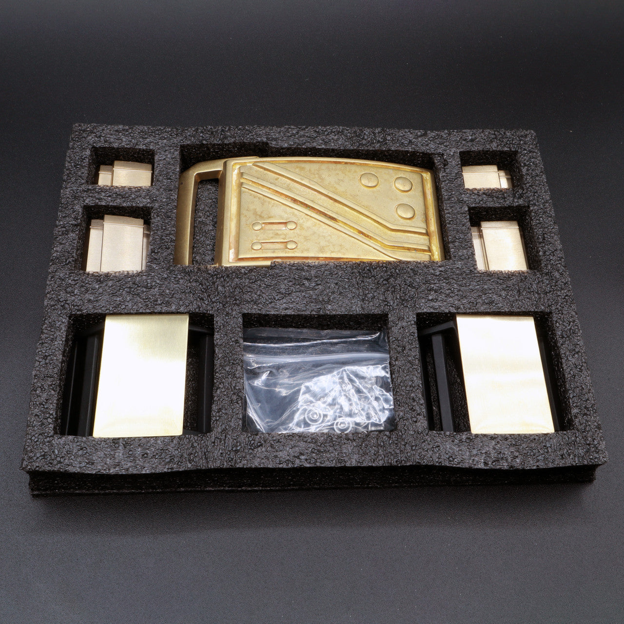 I placed a custom order which included the eight brass detail pieces and the two kidney buckles. The quality is amazing and shipping time was very fast. I would highly recommend these parts to anyone else working on a Book of Boba Fett costume!